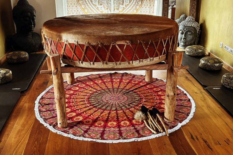 Erlebe die transformative Kraft einer Motherdrum Healing Session. Eingehüllt in die tiefen, erdenden Klänge der Trommel, findest du Ruhe und Heilung für Körper und Geist. Lass dich von den Vibrationen durchströmen und erde dich tief. Alte Muster werden aufgebrochen und können abfließen.